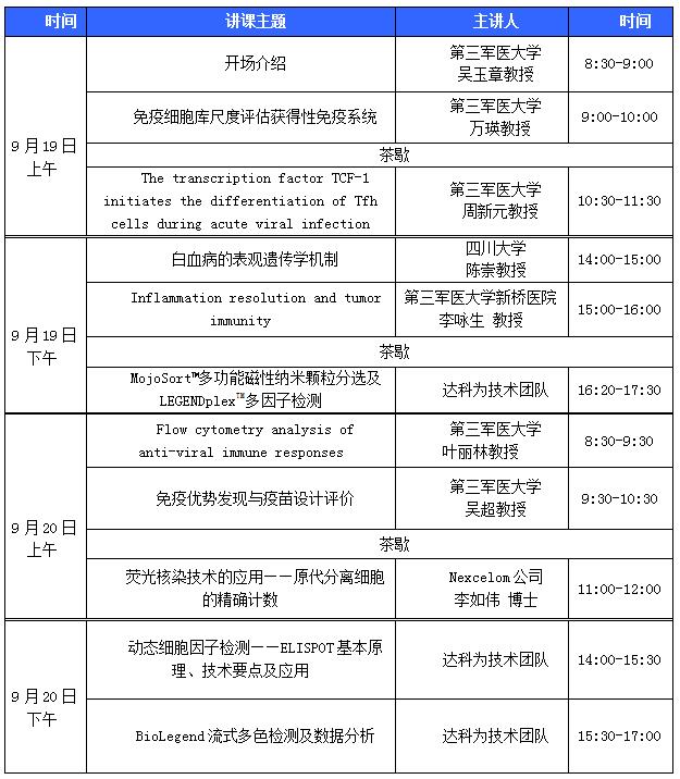 繼達(dá)科為生物第三屆流式培訓(xùn)班北京站在北大醫(yī)學(xué)部成功舉辦后,客戶(hù)反響熱烈,反饋良好。鑒于此,第三屆流式培訓(xùn)班重慶分站將于9月19-22日在重慶第三軍醫(yī)大學(xué)拉開(kāi)帷幕,為期4天。
