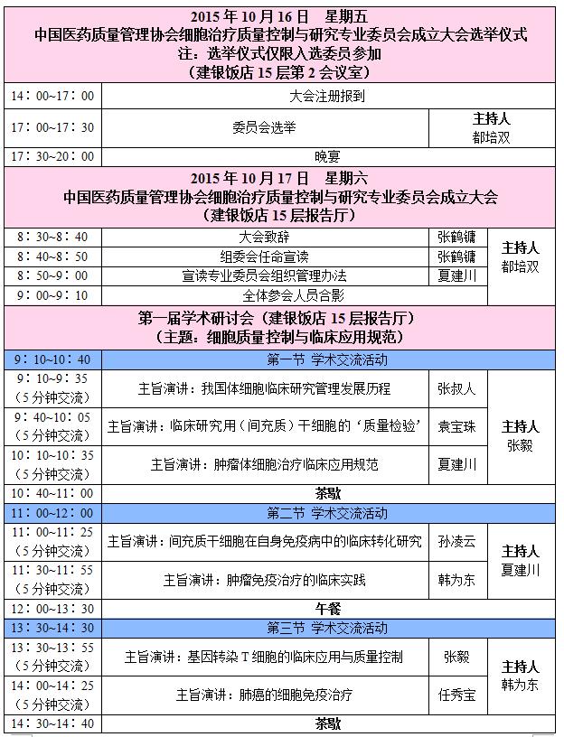 由中國醫(yī)藥質量管理協(xié)會細胞治療質量控制與研究專業(yè)委員會(籌)主辦、中山大學附屬腫瘤醫(yī)院、鄭州大學一附院、拜西歐斯(北京)生物技術有限公司聯(lián)合承辦的“中國醫(yī)藥質量管理協(xié)會細胞治療質量控制與研究專業(yè)委員會成立大會暨第一屆學術研討會”將于2015年10月16-17日在北京召開,成立大會將選舉產(chǎn)生第一屆委員代表和常務委員會委員,研討會將圍繞“細胞質量控制與臨床應用規(guī)范”主題開展學術交流,屆時將邀請國內(nèi)外細胞治療領域(包括干細胞和免疫細胞)的專家學者就研討會主題作學術報告。本專業(yè)委員會是細胞治療質量控制與研究領域學術交流的大平臺,將定期舉辦各種規(guī)模的學術交流會議,通過學術會議,以期達成行業(yè)共識,推動細胞制劑質量控制標準體系的建立和相關政策出臺,使我國的細胞治療行業(yè)在規(guī)范化的基礎上健康有序發(fā)展。