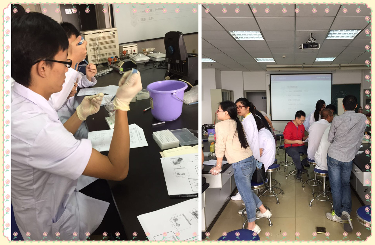 接著是采集血液樣本,隨后每個小組開始實驗,指導人員對關鍵步驟進行講解及演示,并且在實驗過程中,學員就具體實驗操作及自己課題中遇到的問題與達科為技術人員進行深入的討論,有學員表示受到一定啟