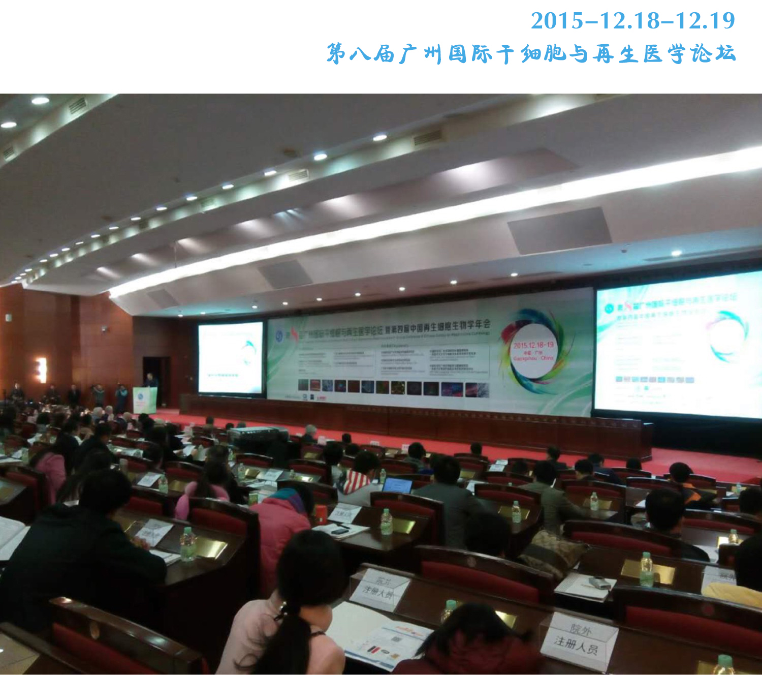 “第八屆廣州國際干細胞與再生醫(yī)學論壇”于2015年12月18日-19日在廣州白云國際會議中心4號樓1樓越秀華堂如期召開。本次大會邀請到了名譽主席中科院院士,同濟大學校長裴剛教授致辭,以及2015新增中國科學院院士、中科院動物所副所長周琪教授來做作報告,同時邀請到法國國家科學研究中心jean paul thiery教授、劍橋大學patrick maxwell教授,以色列魏茲曼科學中心jacob hanna等外國專家教授來作報告,參會人數(shù)達200多人。