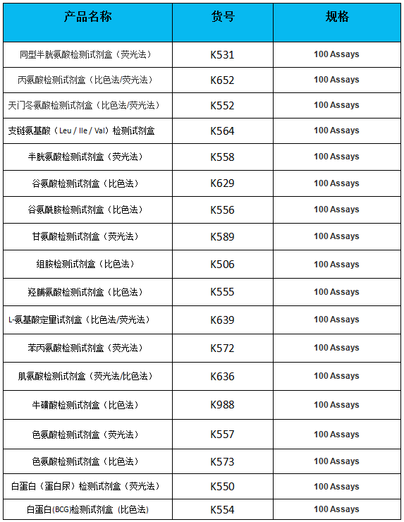 更多氨基酸檢測試劑盒,不容錯(cuò)過!