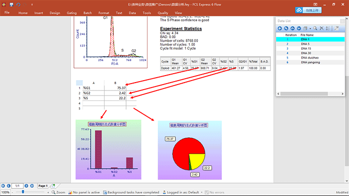 演示內(nèi)容:細(xì)胞周期數(shù)據(jù)的分析,關(guān)于細(xì)胞周期各個(gè)參數(shù)的調(diào)用,統(tǒng)計(jì)學(xué)圖表的建立