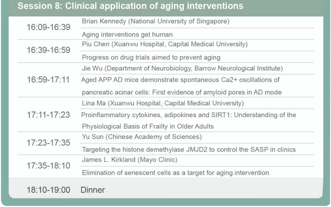 大會(huì)將邀請(qǐng)國際衰老研究相關(guān)領(lǐng)域的優(yōu)秀級(jí)科學(xué)家、專家學(xué)者及醫(yī)學(xué)工作者,圍繞“衰老的機(jī)制和干預(yù)”這一主題,針對(duì)“衰老機(jī)制”,“衰老與再生”,“代謝與衰老”,“衰老的遺傳和表觀遺傳機(jī)制”,“衰老的標(biāo)記物”,“衰老及衰老相關(guān)疾病的干預(yù)”等科學(xué)問題進(jìn)行廣泛深入研討,旨在推動(dòng)科學(xué)應(yīng)對(duì)人口老齡化,合作研發(fā)防控過早老化及相關(guān)疾病的舉措。