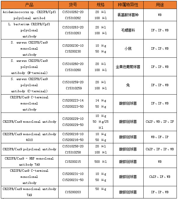 CRISPR/Cas9抗體例舉
