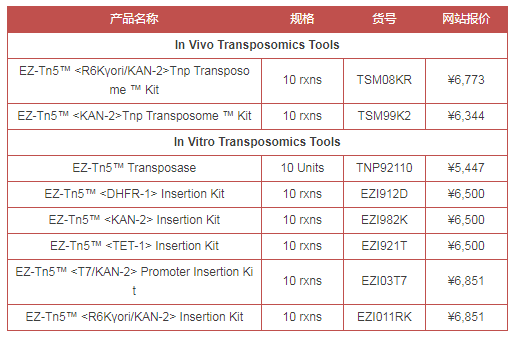 Lucigen提供的EZ-Tn5轉(zhuǎn)座酶是Tn5轉(zhuǎn)座酶的高活性突變形式,是一種高效酶,用于在體外將EZ-Tn5轉(zhuǎn)座子插入到任何目標DNA中。