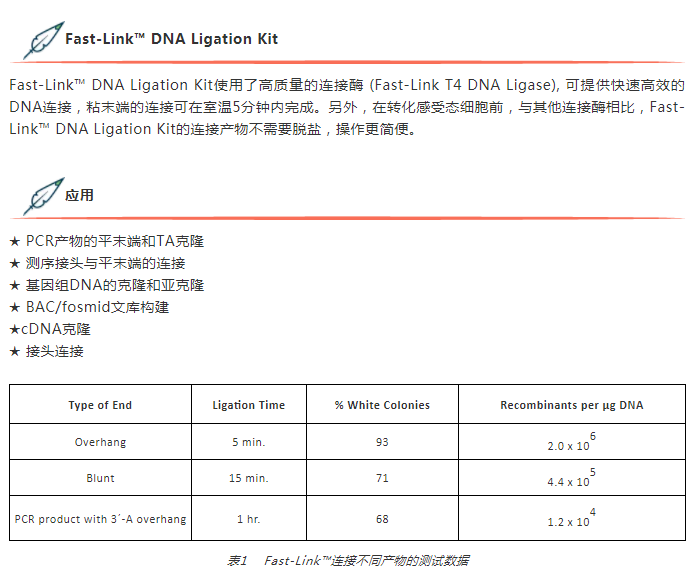 五分鐘完成粘末端連接?Fast-Link? DNA Ligation Kit,您值得擁有!