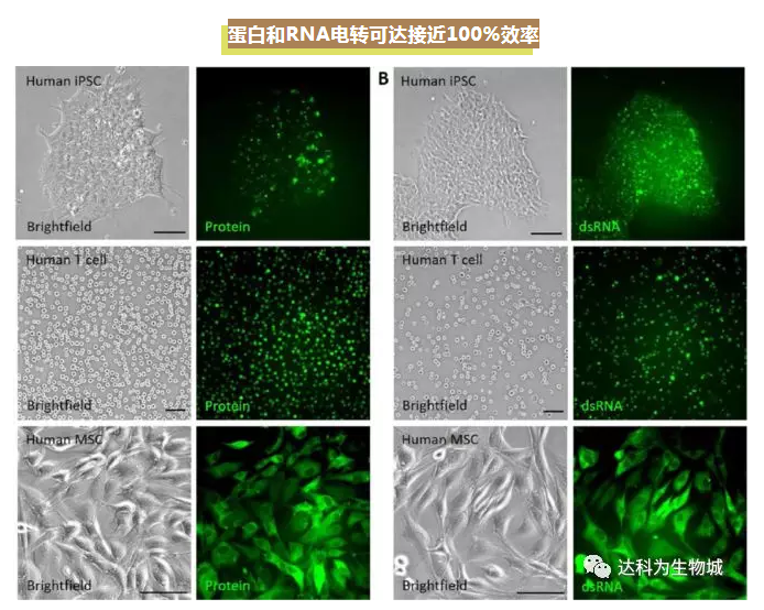 徐、夏兩個(gè)實(shí)驗(yàn)室主要從事干細(xì)胞和轉(zhuǎn)基因動(dòng)物模型研究,因此對(duì)于基因編輯主要著眼在方法學(xué)上,力爭(zhēng)使基因編輯高效并且簡(jiǎn)單,可以普遍性地應(yīng)用于各種細(xì)胞上。相比于Marson組的文章,徐、夏這篇文章還報(bào)道了在除了T細(xì)胞之外的多種細(xì)胞包括iPSC干細(xì)胞,MSC間充質(zhì)干細(xì)胞,以及一些細(xì)胞系上取得的良好效果。