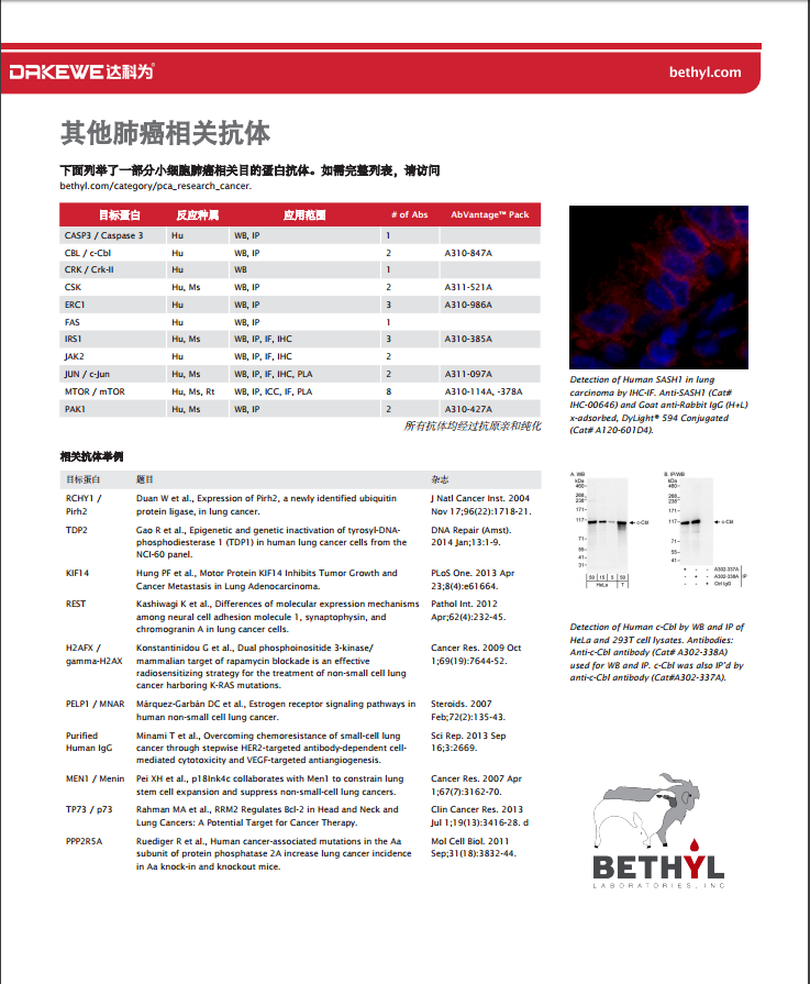 Bethyl --肺癌相關(guān)研究抗體