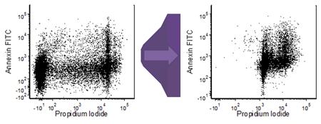 流式細胞分析時,樣本細胞中一般都含有一定量的死細胞,通過一定的方法可以減少樣本中死細胞的比例,但是完全去除樣本中的死細胞幾乎是不可能的。但流式分析的目標為活細胞,因此流式分析時將死細胞當作活細胞來分析,會嚴重影響流式分析的結(jié)果,通??梢赃x擇熒光染料來標記區(qū)分死活細胞的方法,下面介紹一些流式分析時區(qū)分死細胞和活細胞的簡單方法。