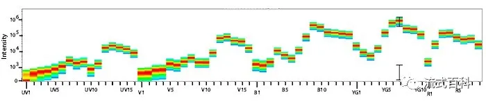 為了解決這個問題,光譜流式的技術(shù)在借鑒傳統(tǒng)流式技術(shù)的基礎(chǔ)上應(yīng)運而生,通過分析每個熒光素的光譜特征區(qū)別不同的熒光素,即使發(fā)射波長相似的熒光素如APC和AF647,由于其波形不同,在光譜流式中也能很好的解析開,可消除傳統(tǒng)流式中熒光間補償?shù)睦_,另外通過對特異性光譜的分析可以方便的消除自發(fā)熒光信號的干擾。因此,光譜流式相對于傳統(tǒng)流式來說可以同時檢測更多的參數(shù),那么適配光譜流式的熒光素的開發(fā)是這項技術(shù)發(fā)展的核心。