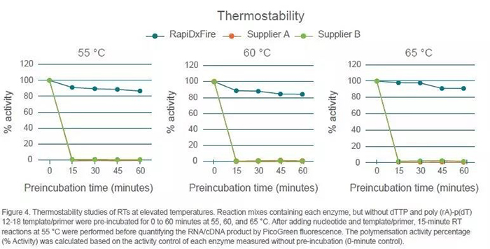 • RapiDxFire耐高溫逆轉(zhuǎn)錄酶在高溫下表現(xiàn)佳
