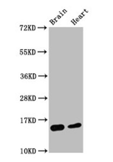 圖1. 使用0.55 ug/ml Histone H3.1K4me2單克隆抗體(貨號:A68400)檢測小鼠腦和心臟組織Histone H3.1K4me2蛋白表達(dá)水平,檢測到目的蛋白大小15 KDa。